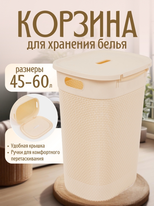 Корзина для белья Евро 60 л /БЕЖЕВЫЙ