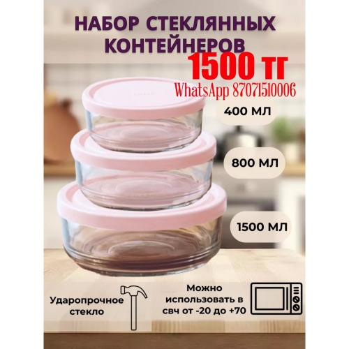 318 Набор стеклянных контейнеров В12 РОЗОВЫЙ