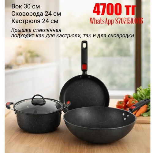 Набор кастрюля, сковорода, вок +крышк